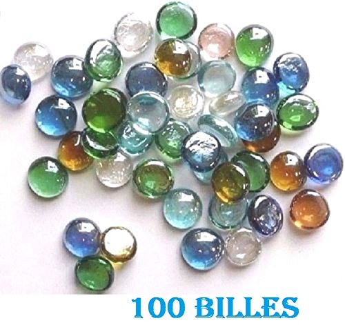 lot de 100 Billes de décoration loupe transparente couleur vert bleu, de récré ou déco maison
