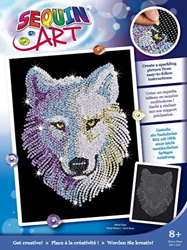 Mammut 8041932 Sequin Art Peinture à paillettes Loup des neiges Kit de bricolage avec cadre en polystyrène Modèle d’images velouté Paillettes Broches Instructions (français non garanti) Pour enfants à