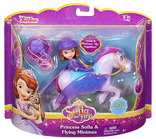 Girls can play out the special relationship between their favorite princesse Sofia the First characters and send them Flying Through the air .; Each 3-inch figure wears a unique riding outfit ; Horses have rooted Tails, glittery Wings that Bobble and a unique hairbrush ; JR ‘s based off of Characters from Disney Princesse Sofia the First ; Collect them all (each sold separately)Disney Princesse Sofia the First Flying Horse, Minimus