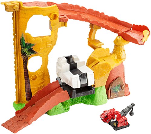Dans l’attaque de Boulder, T-Rux attaque Mega-Trux – comme dans la série. L’ascenseur Dino transporte T-Rux au sommet de la gorge à regarder. Ensuite, il descend sur la glissade rocheuse sinueuse. Mais méfiez-vous … la diapositive mène dans la bouche de Mega-Trux, et vous ne savez jamais si elle reste ouverte ou ferme et capture l’attaquant. L’ensemble de jeu comprend un personnage T-Rux. Il y a aussi des emplacements pour suspendre les réparations.
