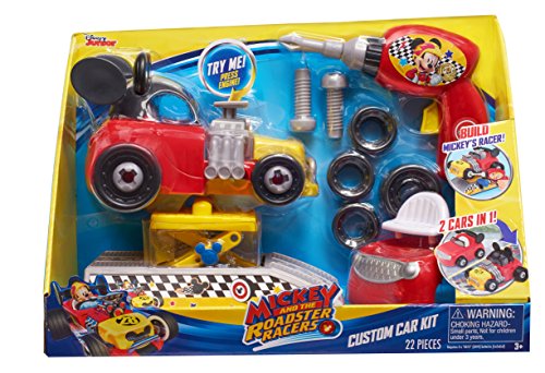 Ce jeu tiré de l’univers du dessin animé Mickey et ses amis a pour nom officiel : Mickey Roadster Racers Kit de Voiture sur Mesure.
