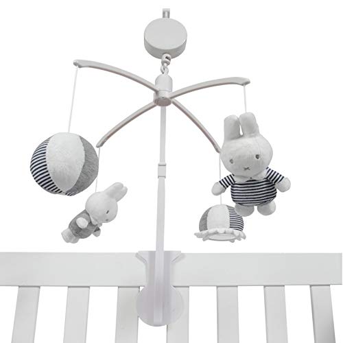 Facile d’utilisation, il suffit de remonter le mécanisme et le mobile se met à tourner en jouant une tendre berceuse. Bébé sera ravi de pouvoir se divertir en observant la ronde es petits lapins Miffy, la balle ronde et la balle fleur… et il s’endormira doucement.