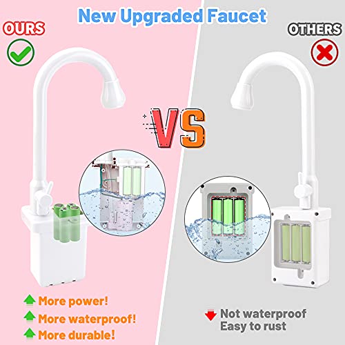 Mini Tudou Jouets d’évier avec Eau Courante,Jouets de Cuisine pour Fille,Jeu de rôle Électronique Cuisine Jouets d’eau avec Robinet amélioré,Jeu de Vaisselle pour Enfant