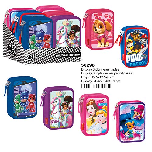 Cet article tiré de l’univers du dessin animé Les Triplés a pour nom officiel : Montichelvo Montichelvo Disp.6 Child Triple Pencil Cases Assort. Trousses, 22 cm, Multicolore (Multicolour).