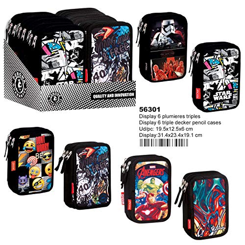 Ce jeu tiré de l’univers du dessin animé Les Triplés a pour nom officiel : Montichelvo Montichelvo Disp.6 Triple Pencil Cases Assort. Senior Trousses, 22 cm, Multicolore (Multicolour).