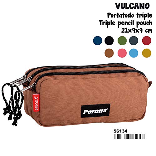 Etui Perona Vulcano Brown PORTATODO scolaire Perona en couleur marron uni trois départements spacieux avec fermeture à glissière produit Perona Dimensions : 22.00 x 9.00 x 9.00