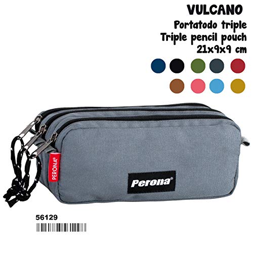 Etui Perona Vulcano Grey PORTATODO scolaire Perona en couleur gris trois départements spacieux avec fermeture à glissière produit Perona Dimensions : 22.00 x 9.00 x 9.00