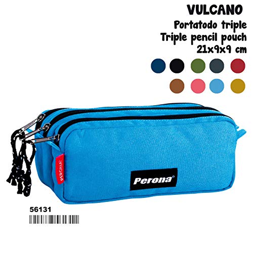 Etui Perona Vulcano Light Blue PORTATODO scolaire Perona en couleur bleu clair avec trois départements spacieux à fermeture éclair produit Perona Dimensions : 22.00 x 9.00 x 9.00