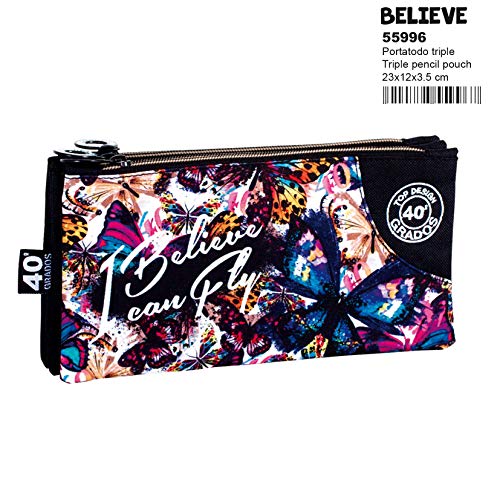 Etui Perona Belive triple PORTATODO de trois compartiments avec sérigraphie de multicolores grâce à fermeture éclair avec ouverture type soufflet produit 40 degrés Fabriqué par Perona Dimensions : 23.00 x 12.00 x 3.50