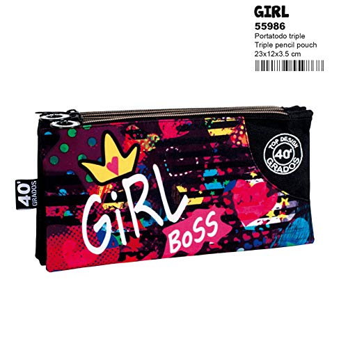 Etui Perona Girl triple PORTATODO orangé avec trois spacieux compartiments à fermeture éclair avec ouverture type soufflet produit 40 degrés Fabriqué par Perona Dimensions : 23.00 x 12.00 x 3.50
