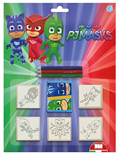 Ce produit tiré de l’univers du dessin animé Pyjamasques a pour nom officiel : Multiprint- Blister 5 TAMPONS PYJAMASKS, 5954.