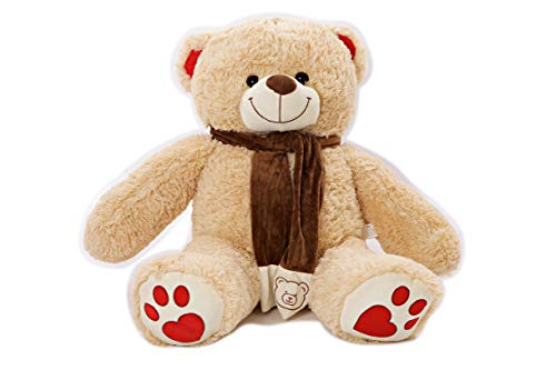 ✅ Brun clair 110 cm (55 cm + 55 cm) ► L’ours en peluche MyTeddyWorld Ginat Cuddly a fière allure pour une nouvelle maison, un ours en peluche doux et moelleux comme un compagnon aimant pour petits et grands!