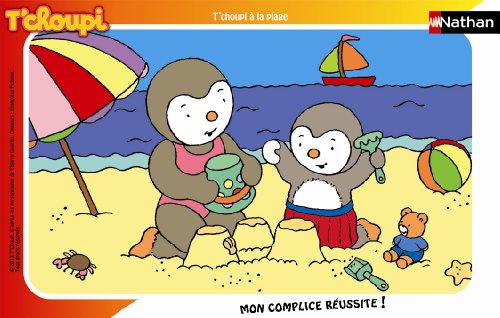 Ce jouet tiré de l’univers du dessin animé Tchoupi a pour nom officiel : Nathan 86096 – Puzzle Enfant avec cadre – T’Choupi à la Plage – 15 Pièces.