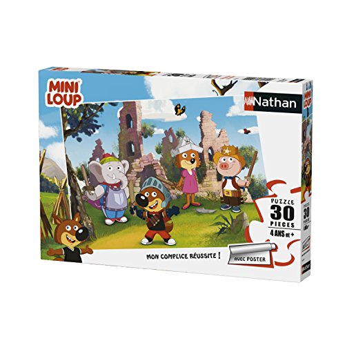 Ce produit dérivé tiré de l’univers du dessin animé Mini-Loup a pour nom officiel : Nathan Puzzle Mini-Loup Joue Au Chevalier 30 Pièces, 86367.