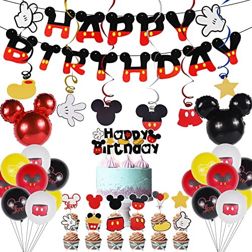 ✨ 【 Fournitures de fête sur le thème de Mickey Mouse 】 Les décorations d’anniversaire pour fille comprennent 1 * bannière de joyeux anniversaire de Mickey, 6 * Spirales suspendues Ornerments, 1 * ballon rouge minni de 18 pouces, 1 * 18 pouces Mickey Ballon Black, 12 * Petit gâteau Topper, 1 * Big Cake Topper, 16 * Mickey Impression de ballons.