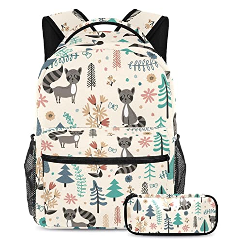 Ours brun animal de la forêt vintage Ensemble de sac d’école pour adolescents filles garçons enfants, sac à dos étudiant avec étui à crayons pour primaire secondaire junior lycée