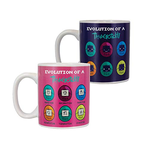 Changement de chaleur : lorsque la chaleur est ajoutée, regardez ce mug se transformer comme par magie d’une tasse bleue avec 6 appareils Tamagotchi en une tasse rose avec l’évolution d’un Tamagotchi. Il s’agit d’un cadeau incroyable pour tout enfant des années 90. Un voyage amusant et mémorable.