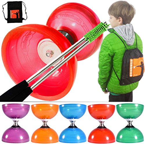 Garanti 2 ans. Notre magasin parisien spécialisé en diabolos depuis plus de 20 ans est ouvert 6j/7j et vous assure des services et des conseils professionnels. Diabolo Cloudbuster 105mm avec axe ORBIT3 triple roulement à bille pour une rotation facile à haute vitesse pour les âges de 6 à 14 ans. Idéal pour une utilisation polyvalente pour les débutants et utilisateurs avancés