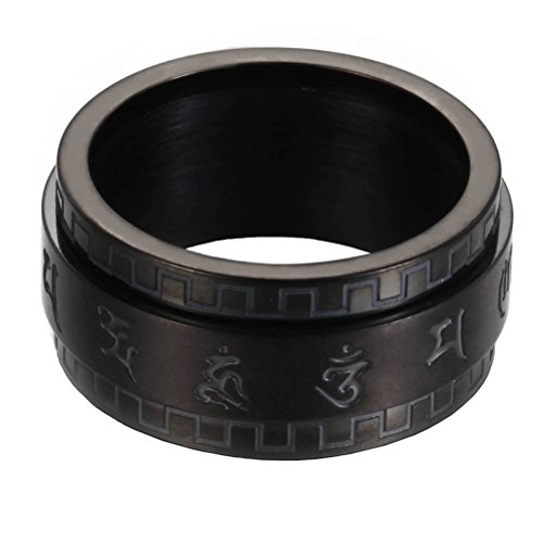 PAURO Hommes Acier Inoxydable Bouddhisme Tibétain Mantra Spinner Bague 10mm Large Bande Vintage Om Mani Padmé Hum Prière Bijoux Noir Taille 54
