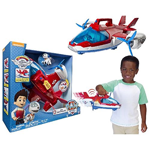 Voici l’avion patrouilleur de la célèbre équipe de Pat’patrouille, pour secourir les habitants de la Grande Vallée. Ce jeu est adapté aux enfants à partir de 3 ans. Avion air patrouilleur Pat’patrouille Venez vite nous aider à secourir la Grande Vallée. Aujourd’hui ce sera sauvetage aérien : vite mettez votre sac dans l’espace de chargement et grimpez à côté du chien robot dans l’avion, attention au décollage… les lumières clignotent, les réacteurs tournent. C’est parti pour de nouvelles aventures ! Et s’il y a besoin de s’approcher près de la ville, aucun problème, il n’y a qu’à mettre l’avion en mode hélicoptère. L’avion est rouge, blanc et bleu il est équipé d’une poignée de transport et produit des effets sonores et lumineux pour des aventures encore plus vraies. L’avion peut se transformer en hélicoptère en pivotant les réacteurs, la cabine de pilotage et l’espace de chargement s’ouvrent. La cabine peut contenir 2 personnages. Le jeu est livré avec le Chien Robot. Fonctionne avec 3 piles LR44 incluses.Ce jouet est inspiré du dessin animé Paw Patrol, la Pat’ Patrouille.
