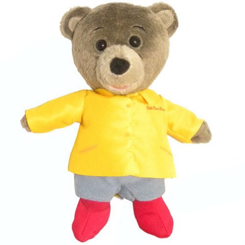 Ce jouet tiré de l’univers du dessin animé Les aventures de petit ours brun a pour nom officiel : Peluche Petit Ours Brun en blouse 17 cm.