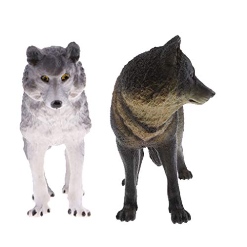 perfeclan 2 Pièces Figurine Modèle Loup Animal Réaliste PVC Action Figure Jouet éducatif Cadeau Enfant Collection Décor