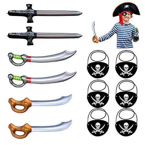 Pirate Maschera per Gli Occhi Pirate Sword Deco 12 pezzi Set Includono Bambini Pirate Eye Patch 6 pezzi e Gonfiabile Spada Pirata Bastone 6 pezzi Halloween Tema Partito Costume Foto Puntelli Accessori