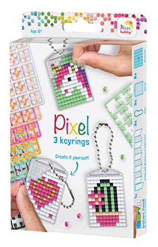 Contenu: 1 modèle avec différents motifs, 3 chaînes, 3 médaillons transparents et 8 carrés de pixels de différentes couleurs