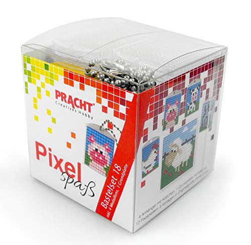 Pixel P90039-63501 Kit de bricolage amusant 18 pour enfants, système d’assemblage simple avec des petites pierres en bioplastique pour créer 4 porte-clés (médaillons), sans repassage ni collage