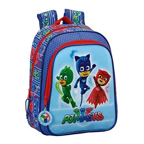 Ce jouet tiré de l’univers du dessin animé Pyjamasques a pour nom officiel : Pj Mask Cartable, 33 cm, Bleu (Azul).