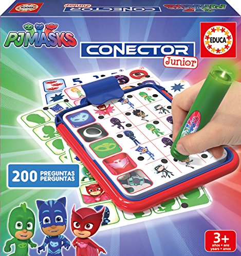Conector Junior Pyjamasques est un jeu amusant pour les enfants, créé pour développer les compétences basiques et acquérir les concepts fondamentaux pour l’apprentissage préscolaire. Quoi de mieux que d’apprendre en jouant avec ce connecteur personnalisé avec des fiches illustrées des Pyjamasques. Pour commencer à jouer, vous devez choisir une fiche et la placer sur la base. Chaque fiche contient 5 questions avec 3 réponses possibles, dont une seule est correcte. Pour répondre, vous devez appuyer sur la réponse correcte avec le stylo magique : si la réponse est correcte, une lumière verte s’allumera; si elle est incorrecte, s’allumera la rouge. Malgré que les enfants puissent jouer seuls, au début nous conseillons la supervision des adultes. C’est un jeu éducatif électronique avec des thèmes très variés : les formes, les couleurs, les chiffres, la logique et beaucoup d’autres. Idéal pour l’emporter là où tu veux. 200 questions. Comprend : 1 connecteur junior et 40 fiches illustrées. Âge recommandé : à partir de 3 ans. Fonctionne avec 3 piles LR41 1,5 V (fournies) Vous pouvez trouver des piles iciPJ Masks Conector Junior game