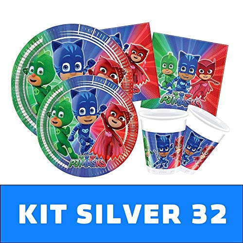 Cet article tiré de l’univers du dessin animé Pyjamasques a pour nom officiel : PJ Masks Kit Pyjamasques pour enfant Motif Birthday Party Kit Pyjamas Produit original Format de commodité Tout le nécessaire Fête à thème, Anniversaire Kit Argent 32.