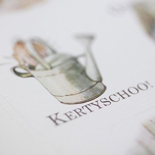 Il y a plusieurs motifs sur la planche, y compris Pierre Lapin, Sophie Canetan, Noisette l’Écureuil et Madame Piquedru.