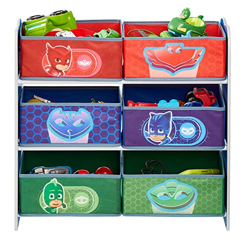Cet article tiré de l’univers du dessin animé Pyjamasques a pour nom officiel : Pyjamasques – Meuble de rangement pour chambre d’enfant avec 6 bacs.