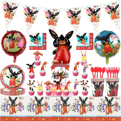 PYTRARTY Bunny Anniversaire Vaisselle,Décorations Bunny Anniversaire,Kit Vaisselle de Fête Bunny,Bunny Ballon,Décorations de Fête Enfant,Deco Anniversaire Enfant