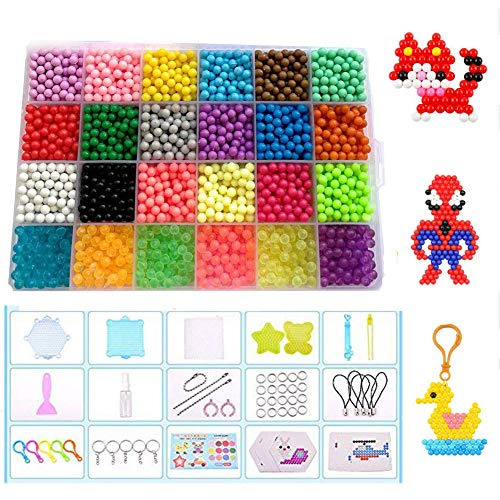 ✩【Jouet créatif DIY】- Comprenant 24 Couleurs 3200 pcs perles colorées, un coffrage polygonal, des pinces, un vaporisateur, une lanière, un porte-clés, une carte de couleur et des instructions. Ensemble de luxe, libérez votre imagination pour fabriquer des porte-clés et des jouets mignons.