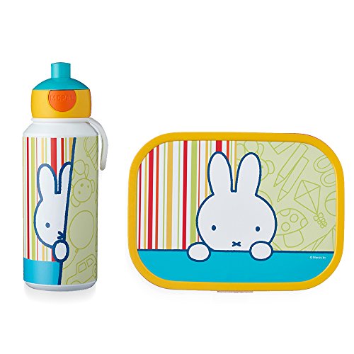 Tout transparent pour une nouvelle école avec kit de repas de Mepal. Ce kit pratique est composé d’une utilisation Pop Up de gourde et une boîte à bento inclus et fourchette. La gourde Pop Up est vraiment parfait : Appuyez et boire, telle est le principe de cette gourde. La bouteille est garanti anti-fuites – Puissance et spécialement conçu pour les petites mains de bébé. La boîte à sandwich offre de la place pour jusqu’à 4 tartines beurrées et est livré avec un bento et fruits fourchette. Si vous lors de l’école repas devient un jeu d’enfant. Surprenez votre fils ou votre fille de goûter même avec une paire de nasch baies, une paire de cubes de fromage ou de saucisses. Les possibilités de variations sont presque sans limite. On peut à chaque jour à de nouvelles profiter. Un autre avantage, la surtout et papas feut : le couvercle trinkflassche peut être utilisé pour nettoyer facilement auseinandergeschraubt et l’intégralité de la bouteille et la boîte à sandwich être lavés dans le lave vaisselle.Boîte à Déjeuner + Gourde (pu+lb) – Miffy