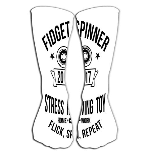 ruishandianqi Chaussettes Hautes Outdoor Sports Men Women High Socks Stocking Fidget Spinner Typography Print White Background Tile Length 19.7″(50cm)