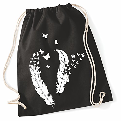 Sac pochette en tissu avec cordon jutebeutel baumwolltasche schulbeutel sac à dos sac en canevas blanc motif plumes 10, bleu)