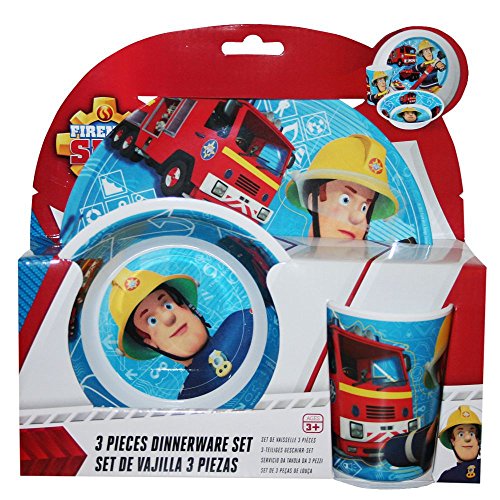 Sam Le Pompier – Fireman Sam – Set Vaisselle (Assiette, Assiette Creuse, Verre)