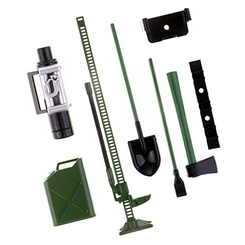 Cet article tiré de l’univers du dessin animé Jack et les camions a pour nom officiel : Sharplace 1/10 Rock Crawler RC Accessoires Décoration: Pelle, Jack, Hache, Réservoir, Treuil – Vert.