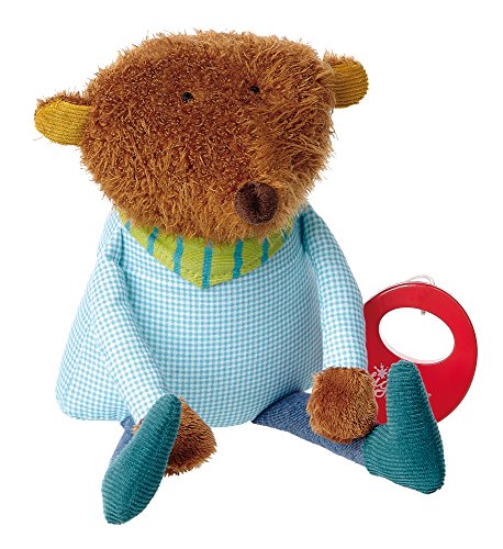 Ce jeu tiré de l’univers du dessin animé Les aventures de petit ours brun a pour nom officiel : sigikid Peluche Musicale Ours pour Bébé Garçon Bleu/Brun 29 cm.