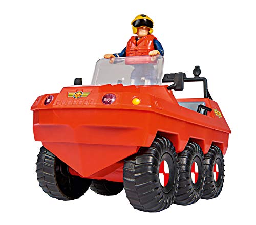 Comme ton héros préféré, Sam le pompier, va porter secours aux habitants de Pontypandy ! avec cette représentation parfaite du véhicule amphibie « hydrus » Tu auras vraiment impression de faire partie de équipe de pompiers du dessin animé ! mesurant 20cm et possédant 6 roues, cet amphibie te permettra de secourir autant les victimes en mer que sur terre. Tu pourras imaginer de multiples histoires avec ta figurine articulée représentant Sam et les nombreux accessoires inclus: Casque, gilet de sauvetage, jumelles, extincteur, planche de sauvetage, lampe torche, caisse de 1Ers secours… Grâce à sa fonction flottante tu pourras jouer dans le bain pendant des heures ! a partir de 3 ans.