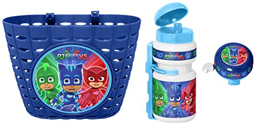 Ce produit tiré de l’univers du dessin animé Pyjamasques a pour nom officiel : Stamp – Set Corbeille – Sonnette – Bidon Vélo – PJ Masks – Pyjamasques, PJ280508.