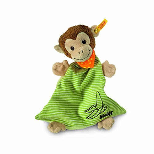 Steiff knuffel Jocko monkey comforter, brown/beige/gree 26 CMDescriptif produit: Petit singe Jocko doudou, brun/beige en coton , adapté à la peau de bébé. 26 cm. Lavable en machine à 30°. Avec le « bouton à l’oreille », symbole de la qualité Steiff.