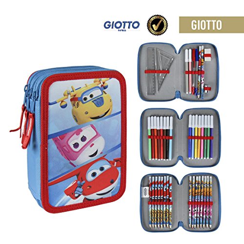 Super Ailes 2700-186 Trousse Triple, 3 compartiments, feutres, crayons, accessoires école 42 pièces, Polyester, multicolore, Super WingsTrousse 3 zips pour la rentrée.