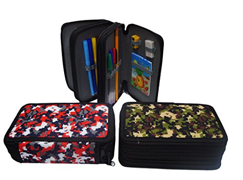 Cet article tiré de l’univers du dessin animé Les Triplés a pour nom officiel : takestop Trousse Camouflage Aléatoire avec 3 Zip Charnières Triple Compartiment accessoriato Complet 27 Pièces Crayons marqueurs École Enfants.