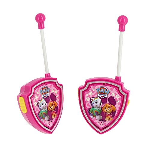 Ces Patty Walkie Talkies sont spécialement conçus pour les petites mains. Les enfants peuvent profiter d’aventures comme Ryder, Skye et Everest. Les enfants peuvent jouer beaucoup de jeux différents et ces Walkie Talkies enseignent également aux enfants la valeur de la communication. Gamme extérieure jusqu’à 40 mètres. Nécessite 2 piles x 9V – non incluses.Portée jusqu’à 40 mètres