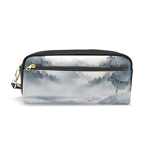 Trousse à crayons pour étudiants, loup sauvage, montagne, hivernal, similicuir, organiseur de stylos, porte-monnaie, grande capacité, sac à main, mini trousse de maquillage