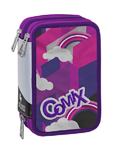 Trousse 3 fermetures éclair Comix Flash La trousse 3 fermetures éclair est l’accessoire indispensable dans votre sac à dos. Contenu : 1 stylo effaçable bleu Pilot Frixion – 1 stylo Fila Rouge Tratto Uno Grip, 1 crayon HB Lyra, 18 crayons de couleur Fila Giotto laqué, 18 feutres Fila Giotto Turbocolor, 1 surligneur, 1 équerre, 1 taille-crayon, 1 gomme, 1 règle transparente, 1 rapporteur transparent, 1 paire de ciseaux avec la pointe arrondie. Dimensions : environ 19 x 13 x 6 cm.COMIX FLASH Trousse 3 fermetures éclair